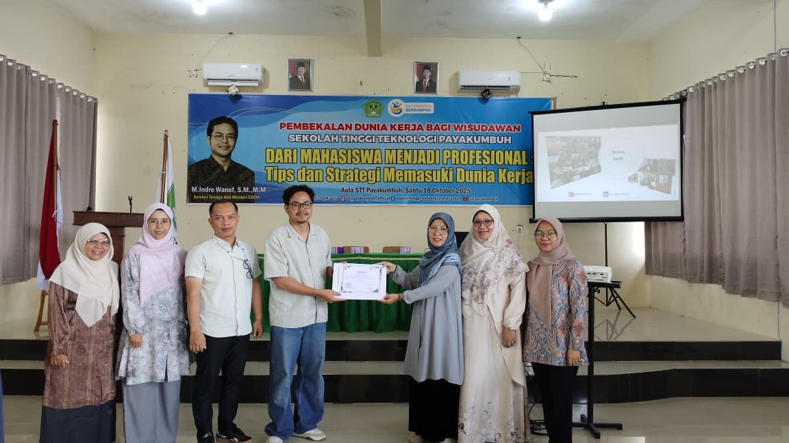 Dalam rangka mempersiapkan lulusan menghadapi dunia kerja yang kompetitif, Sekolah Tinggi Teknologi (STT) Payakumbuh menggelar kegiatan bertajuk “Pembekalan Dunia Kerja bagi Wisudawan”. Acara ini diselenggarakan pada Sabtu, 18 Oktober 2025, bertempat di Aula STT Payakumbuh, dan dihadiri oleh para wisudawan serta mahasiswa tingkat akhir yang tengah bersiap memasuki dunia profesional.