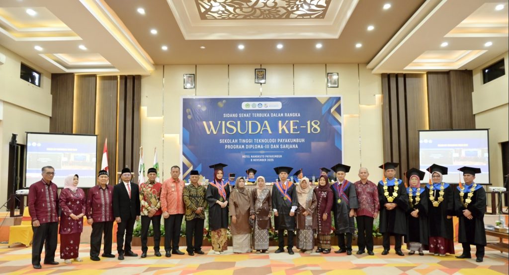 PAYAKUMBUH, 8 November 2025 – Suasana khidmat dan penuh kebanggaan menyelimuti Ballroom Hotel Mangkuto Syariah, Payakumbuh, pada hari Sabtu (08/11/2025). Sekolah Tinggi Teknologi (STT) Payakumbuh sukses menggelar Sidang Senat Terbuka dalam rangka Wisuda Ke-18 Program Diploma-III dan Sarjana.